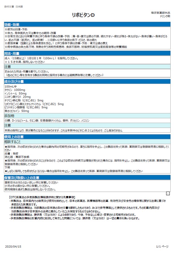 商品名 リポビタンD100mL×10本 【指定医薬部外品】 大正製薬 ブランド リポビタン メーカー 大正製薬 容量 100mL×10本 賞味期限 商品の発送時点で、420日以上あるものをお届けいたします 区分 指定医薬部外品 効能・効果 ・疲労の回復・予防