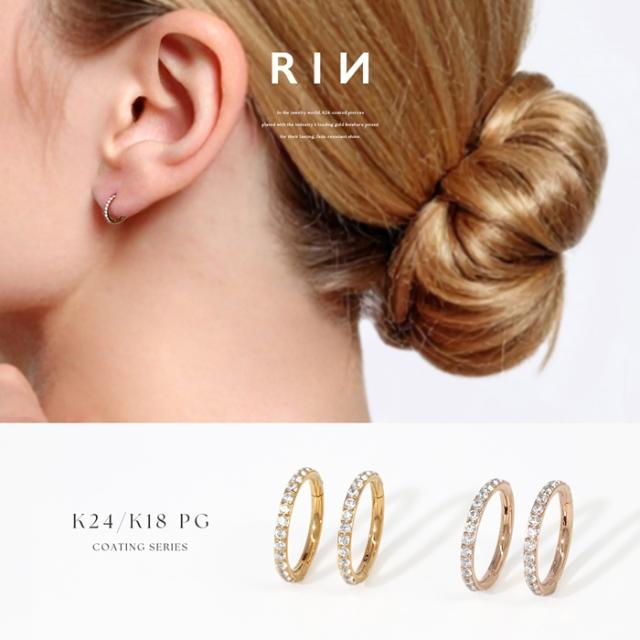 アクセサリー ピアス セレブリティーシリーズ 24金 ピンクゴールド コーティング ジュエル セグメントリングピアス 金属アレルギー 人気 大人 女性 レディース アクセ プレゼント ギフト 【両耳用・2個売り】