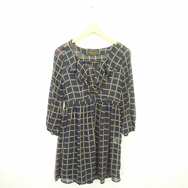 【中古】ブロードゥリー&コー ナノユニバース ワンピース ミモレ丈 ロング チェック 透け感 ペチコート 長袖 36 紺 茶
