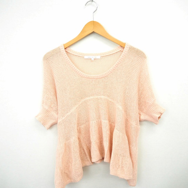 【中古】マーキュリービジュー Mercury Bijou ニット セーター リブ フレア シンプル 丸首 七分袖 F ピンク /MT40
