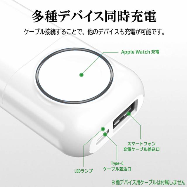 Apple Watch 充電 モバイルバッテリー 5200mAh 大容量 ワイヤレス磁気充電器 高速磁気充電 ポータブル充電 腕時計iWatchシリーズSE/6/5/4/3/2/1 44mm 40mm 42mm 38mm置くだけ充電 iPhone 12/SE2/11/XS/XR/X/iPod 充電対応