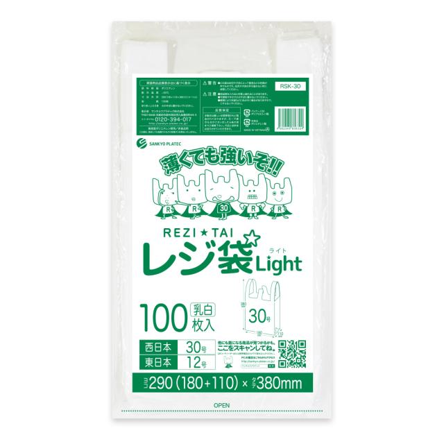 レジ袋 買い物袋 薄手 西日本 30号 (東日本12号) ブロック有 乳白 0.011mm厚 100枚 RSK-30bara/手提げ袋 持ち手付き袋 S ホワイト