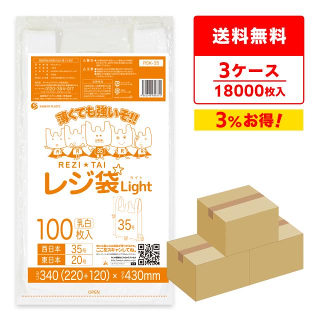 レジ袋 買い物袋 薄手 西日本 35号 (東日本20号) ブロック有 乳白 0.011mm厚 100枚x60冊x3箱 RSK-35-3/手提げ袋 持ち手付き袋 M ホワイト 送料無料