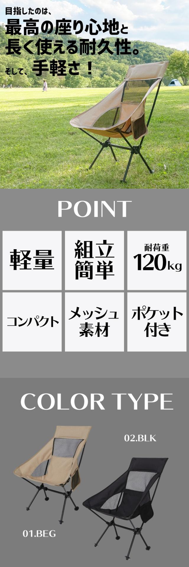 半額 アウトドア チェア バッグ付き いす 椅子 コンパクト 重さ1.2kg 耐荷重120kg フェス BBQ 簡単組み立て ブラック 黒 折り畳み椅子 軽い 軽量 NGCH-100
