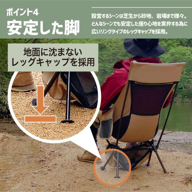 軽量、コンパクトで持ち運び便利。組み立ても簡単、頑丈なA7075(超々ジュラルミン)を使用。座りやすさも考えた組み立てハイチェア