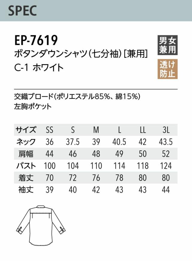 ボタンダウンシャツ EP-7619 七分袖 透け防止 メンズ レディース 男女兼用 事務 ワイシャツ チトセ arbe アルベ