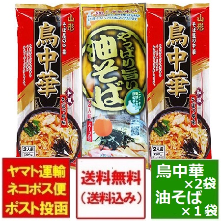 鳥中華 送料無料 油そば みうら食品 鳥中華 山形 油そば 袋麺 3束 ( 鳥中華 2束・油そば 1束 ) 麺類 ラーメン