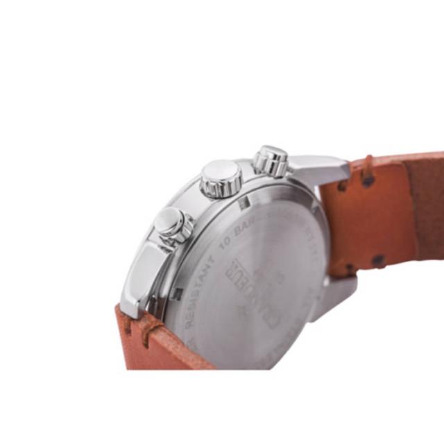 存在感のあボリュームとクロノグラフデザインは普段使いからビジネスシーンにと、幅広くご利用頂けます!また、ベルトには化学物質を使用しない、植物タンニンなめしのヌメ革を使用。使い込むと、色つやが増し、経年変化と共に自分だけの味を楽しんで頂けます。