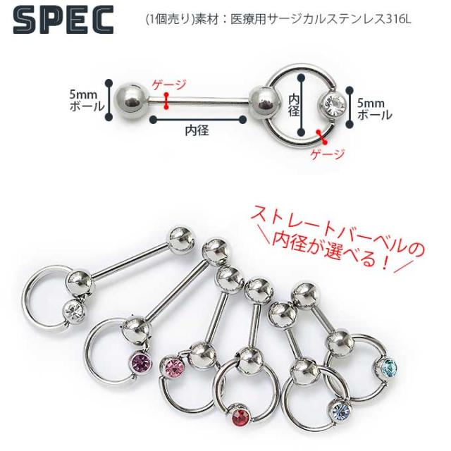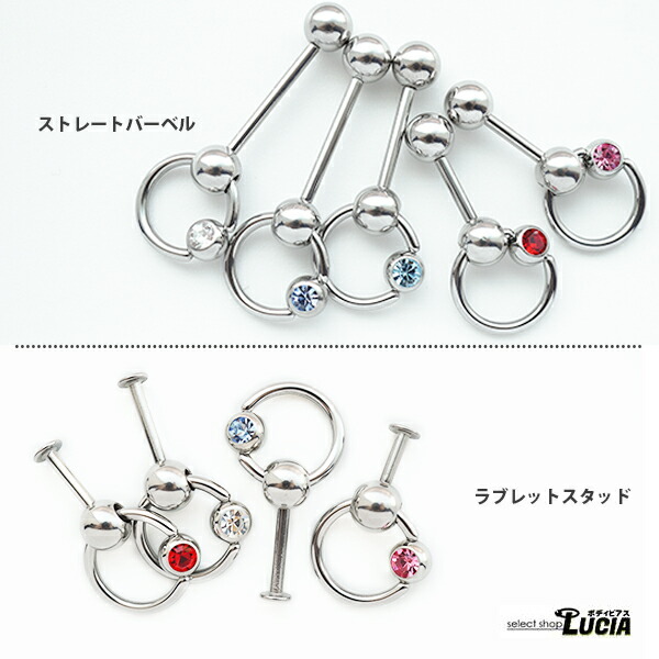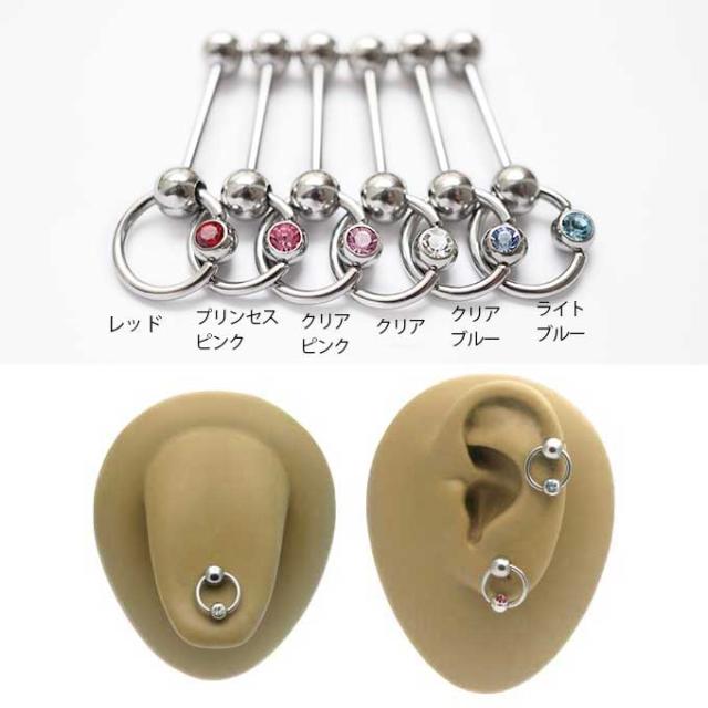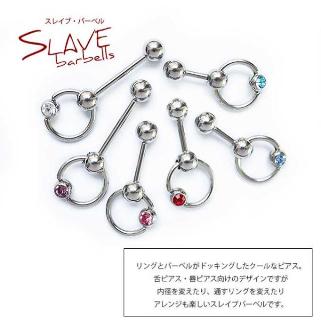 【全品P2倍】舌ピアス ボディピアス 14G ストレートバーベル スレイブバーベル ジュエル キャッチ リング付き ラブレット 316L ステンレス CBR