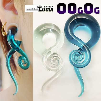 本日P2倍 【宅便無料】0G 00G ピアス ボディピアス スパイラルスワール ツイスト パイレックスガラスプラグ