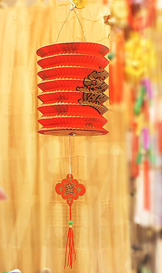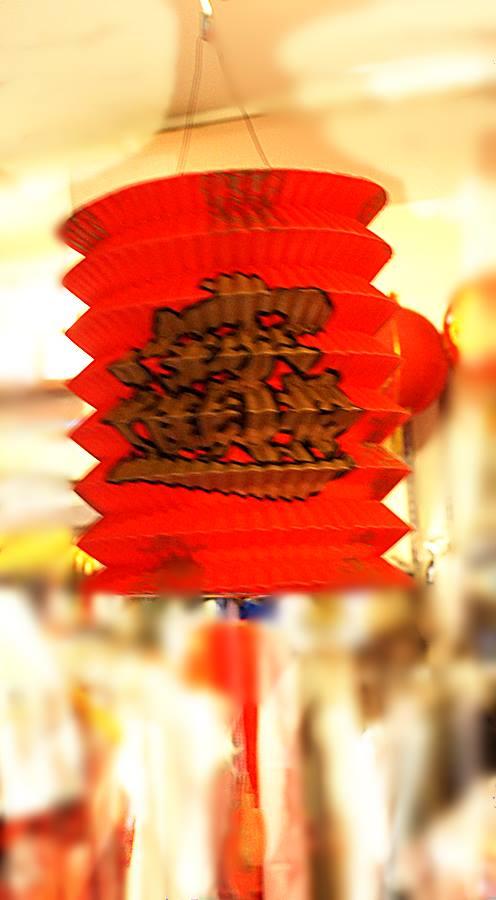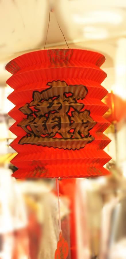 ランタンの両脇に「福」と「招財進寶の造語」が書かれています