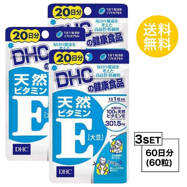 DHC 天然ビタミンE 大豆 20日分×3パック (60粒) ディーエイチシー サプリメント d-α-トコフェロール ビタミンE サプリ 健康食品 粒タイ お試しサプリ】【3個セット