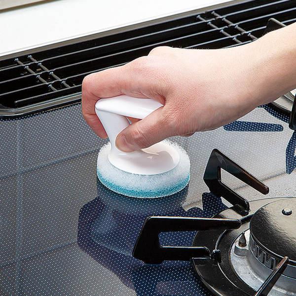 スポンジ ガラストップ用スポンジ ハンディ IH コンロ キッチン掃除 ( キッチン 掃除用品 シンク洗い たわし ガスコンロ クリーナー 流し台 台所スポンジ 傷つけにくい 取替え可能 本体 掃除 グリップ付き 研磨剤 )