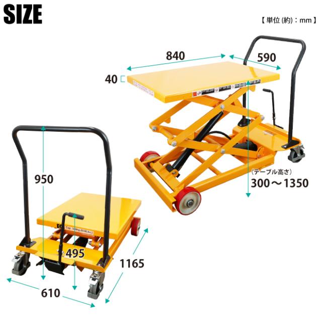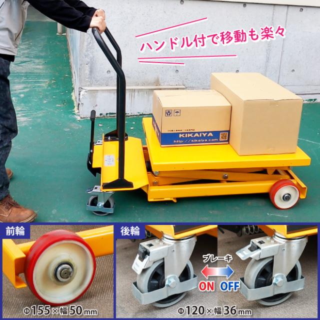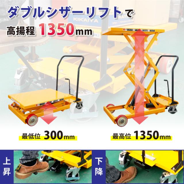 昇降台車 300kg 低床 高揚程 リフトテーブル ダブルシザー テーブルリフト テーブルカート 油圧式 台車 ハンドリフター KIKAIYA