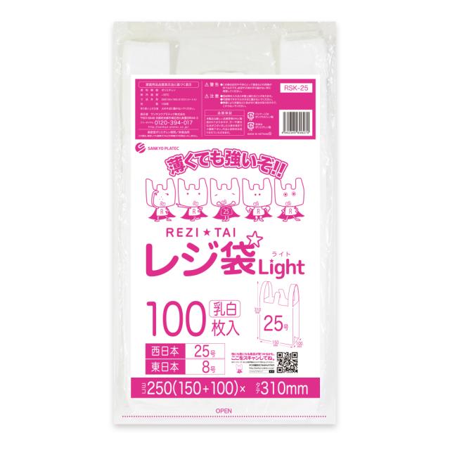 レジ袋 買い物袋 薄手 西日本 25号 (東日本8号) ブロック有 乳白 0.011mm厚 100枚 RSK-25bara/手提げ袋 持ち手付き袋 SS ホワイト