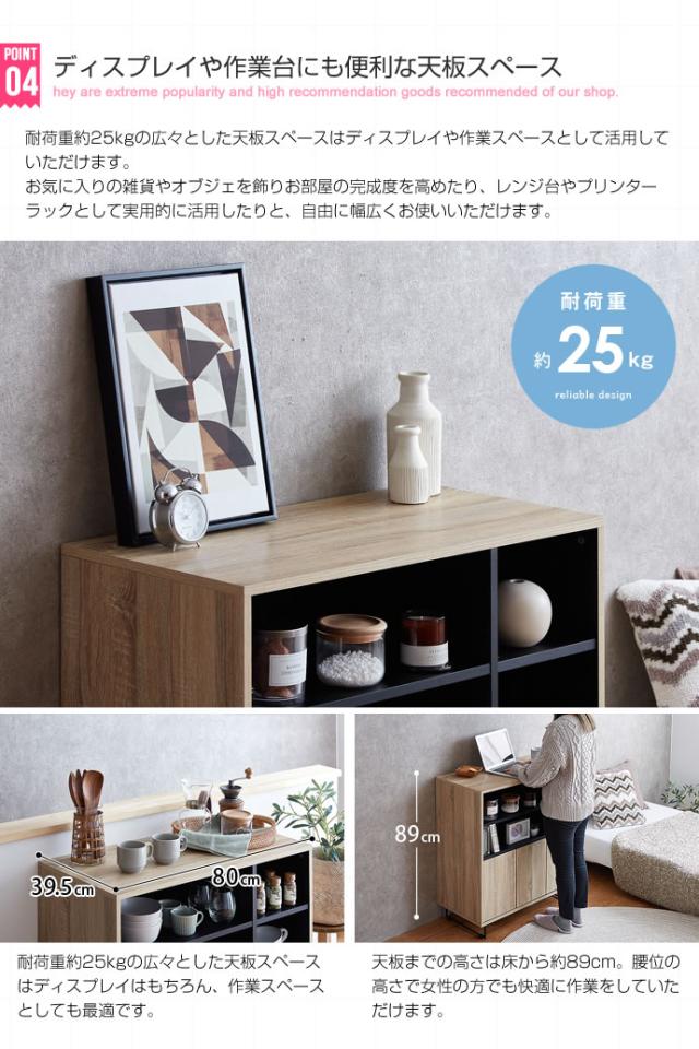 天板は調理家電を置いたり、高さ89cmなので、作業台としてちょうどよい高さです。