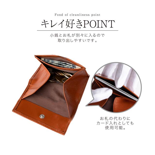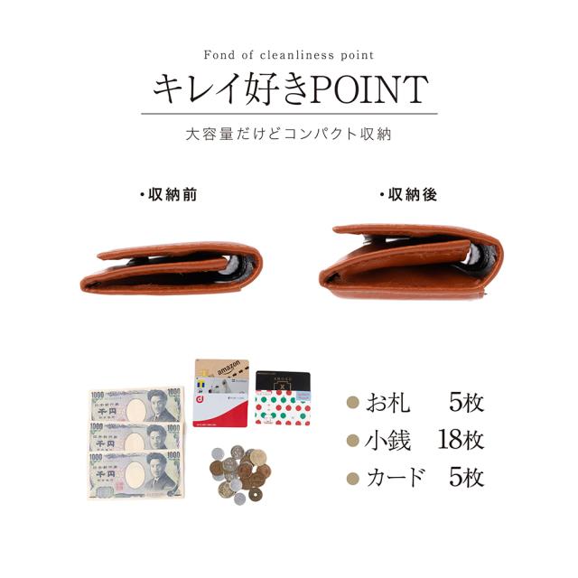 2.独自の裁縫により取り出しやすい設計を実現しました。小銭とカード・お札が別々に入るので取り出しやすくて便利です。