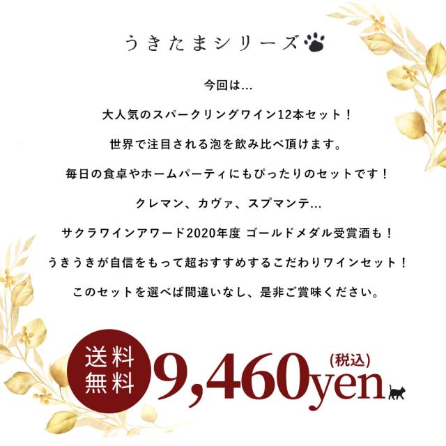 【送料無料】うきたまシリーズ スパークリング12本 ワインセット シャンパン スパークリングワイン 泡 辛口 瓶内二次発酵 カヴァ クレマン