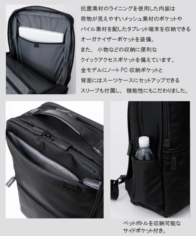 エキスパンダブルで荷物量に応じてマチを拡張できるビジネスリュック。