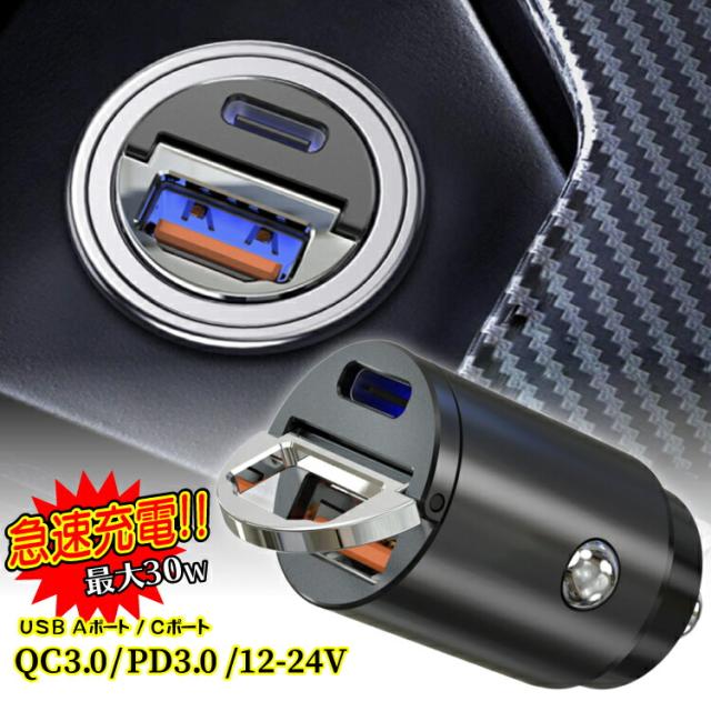 シガーソケット USB 2口 急速充電 充電器 PD QC 3.0 12V 24V シガー ソケット 変換 type-C タイプC カーチャージャー 電源 USB-A 2ポート 4.8A iphone スマホ