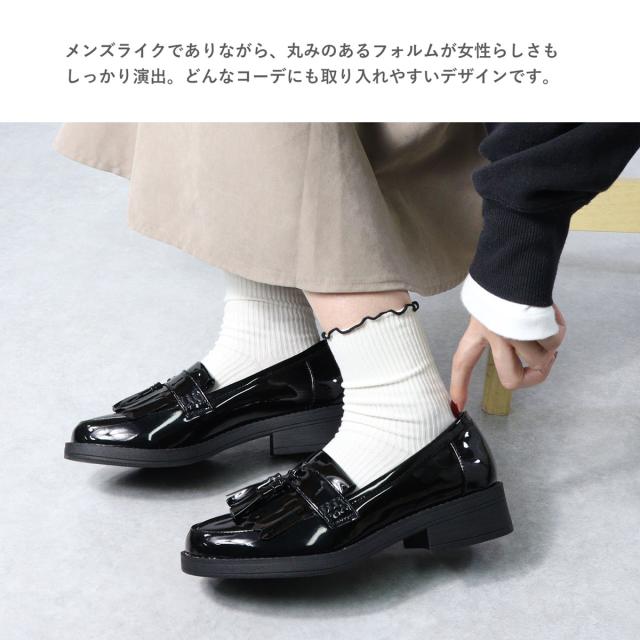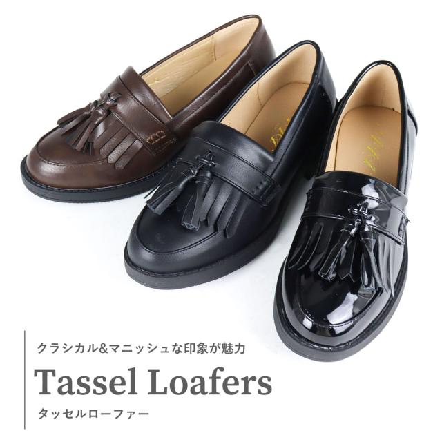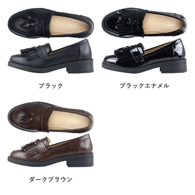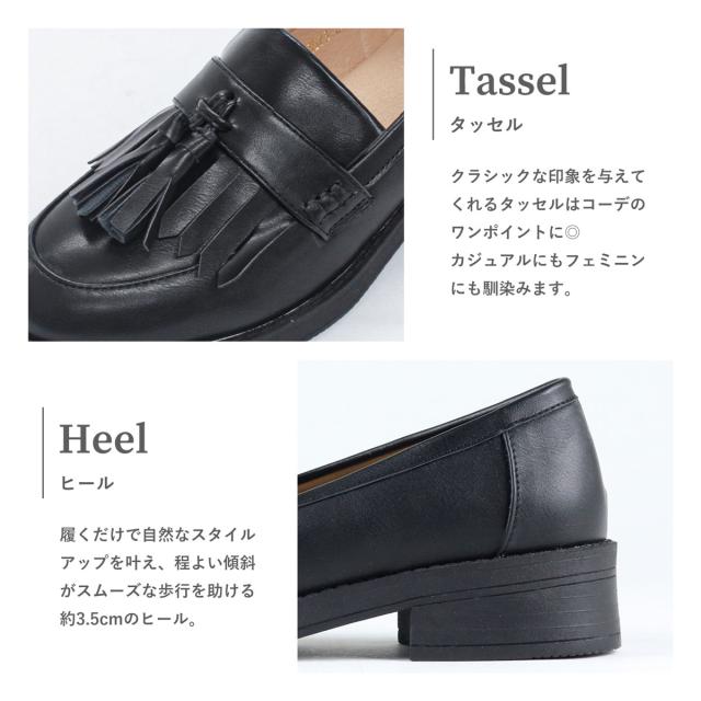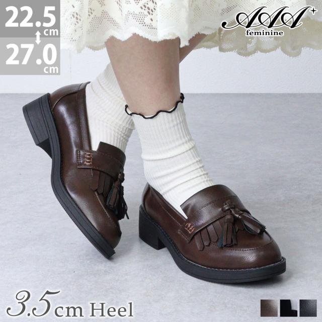 ローファー 痛くない レディース メンズ 3.5cmヒール ローヒール タッセル パンプス 革靴 レザー エナメル 合成皮革 通勤 通学 おしゃれ No.3573 22.5-27.0cm 黒 AAA+ Feminine サンエープラスフェミニン ブラック ブラウン パンプス