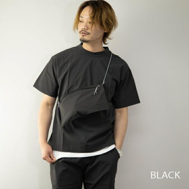 セットアップ メンズ 3点セット ブラック 無地 半袖Tシャツ/イージーパンツ/サコッシュバッグ メール便送料無料 ST38332-BK