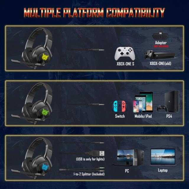ゲーミングヘッドセット ヘッドホン ONIKUMA K19 ブラック 【 PS4、Xbox One、Nintendo Switch、PCに適用 ノイズキャンセリング マイク】