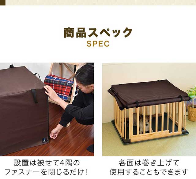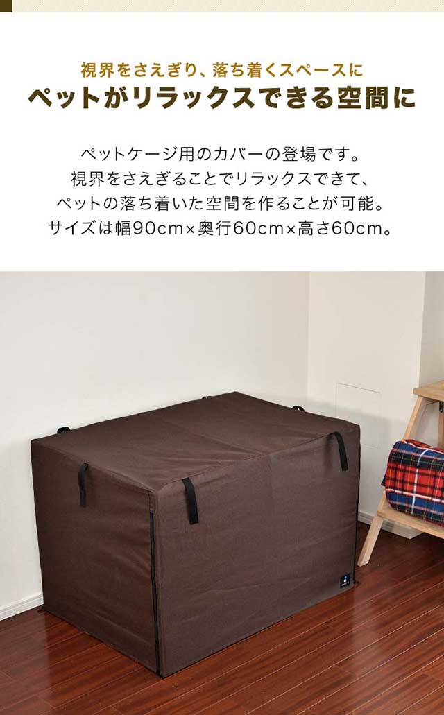 ペットケージ用のカバーの登場です。視界をさえぎることでリラックスできて、ペットの落ち着いた空間を作ることが可能。サイズは幅90cm×奥行60cm×高さ60cm。
