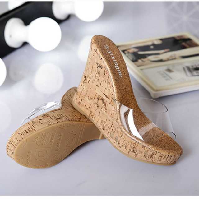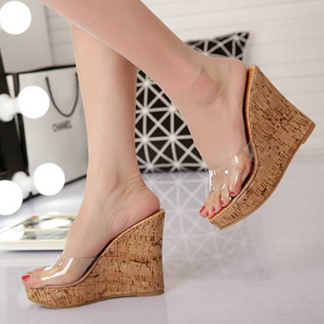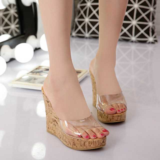 綺麗な美脚がかなうクリア素材のウェッジソールサンダル♪