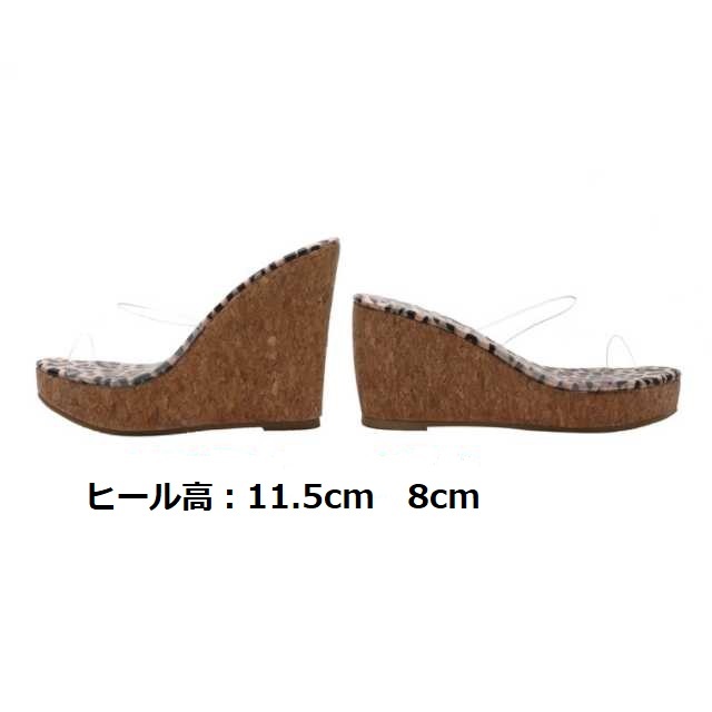 全2色 4種類 厚底 ウェッジヒール サンダル ミュール ハイヒール レディース 木目 ヒョウ柄 美脚 セクシーハイヒール 春夏 脚長効果 クリアー オープントゥ クリアソール キレセク