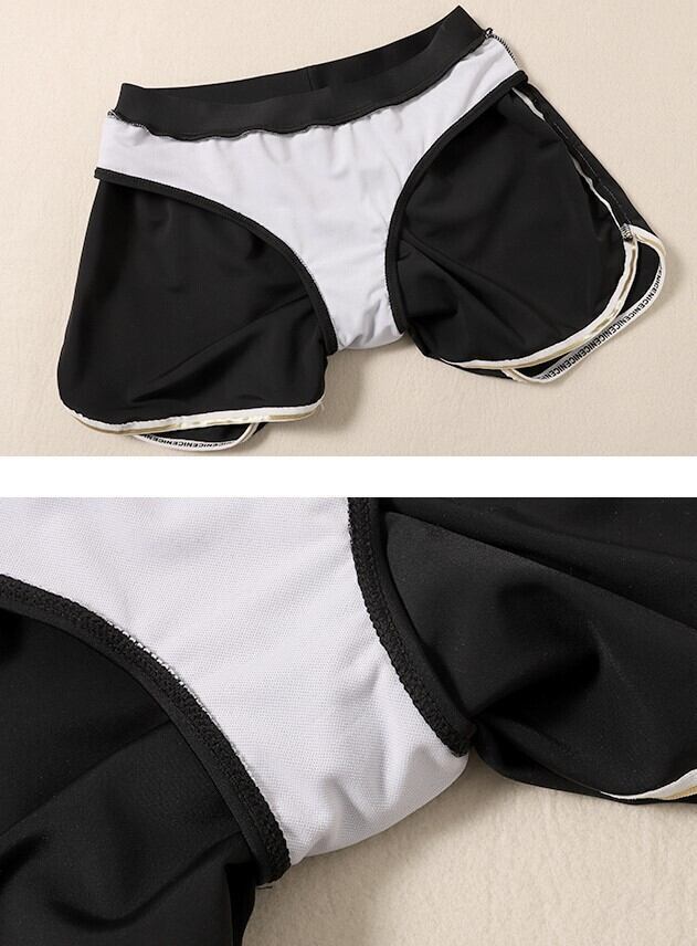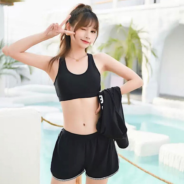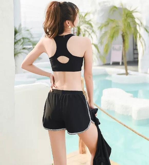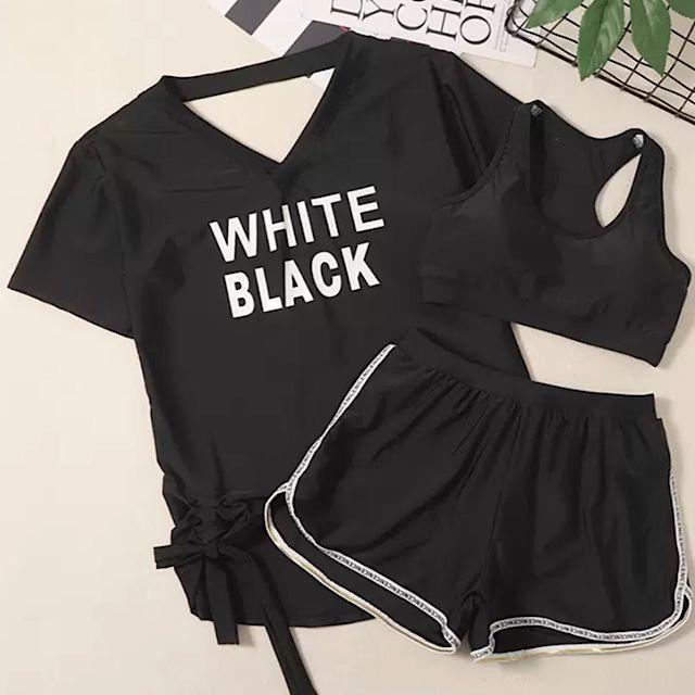 シンプルでスポーティーなデザインのビキニ+ラッシュガードの、嬉しい3点セット。
