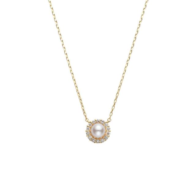 まろやかな輝きのアコヤパールをきらめくダイヤモンドで縁取った、クラシカルで華やかなデザインのネックレス。