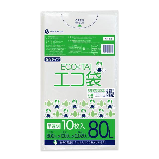 【バラ販売】KN-83bara ポリ袋 80リットル 0.020mm厚 半透明 10枚 / ゴミ袋 ごみ袋