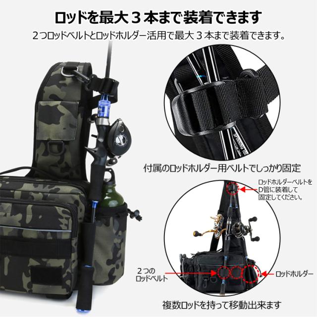 フィッシングバッグ 釣りバッグ ロッドホルダー フィッシング バッグ ショルダーバッグ エギングバッグ タックルバッグ ワンショルダー ルアー 収納バッグ ライトゲーム用 アジング 迷彩 カモフラージュ