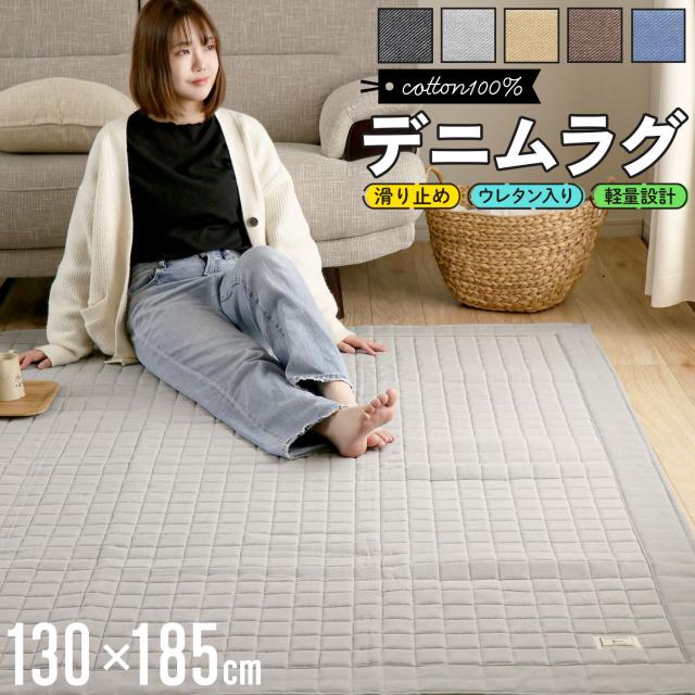 ラグ カーペット 綿100% 洗えるデニムラグ 130×185cm キルティングラグ イブル 2畳 カーペット ラグマット 洗える 絨毯 じゅうたん ホットカーペット対応 秋 冬 用