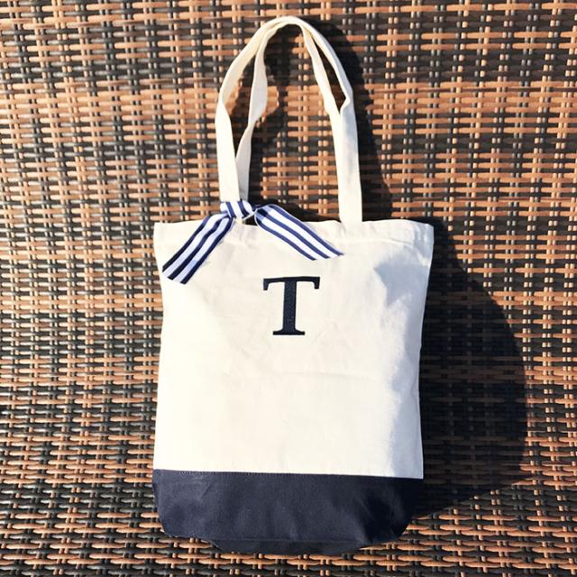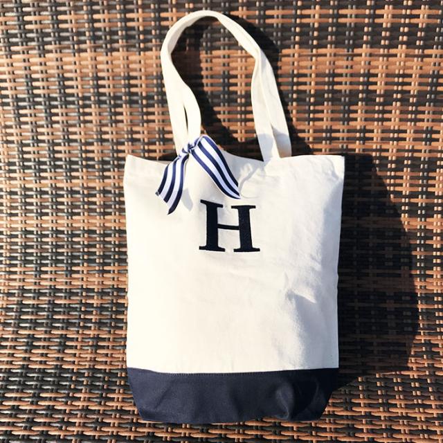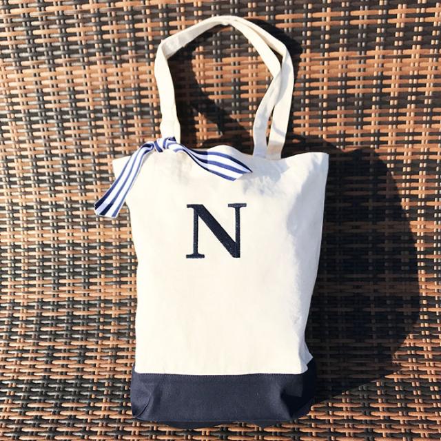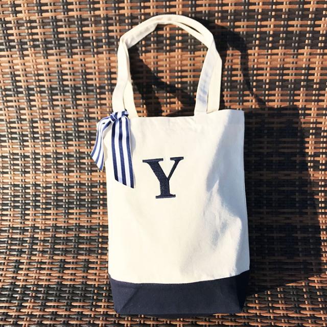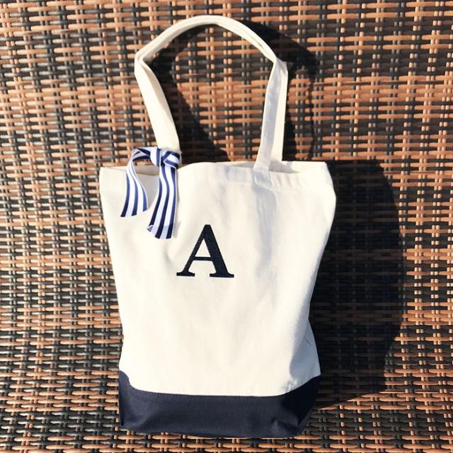 ママ用バッグ イニシャル刺繍入りバッグ トート 保育園用ママバッグ イニシャルトート お洒落 ユニセックス 男の子 女の子 ベビー 子供 キッズ かわいい 大きめトート10L ネイビー ネイビー刺繍【メール便送料無料】