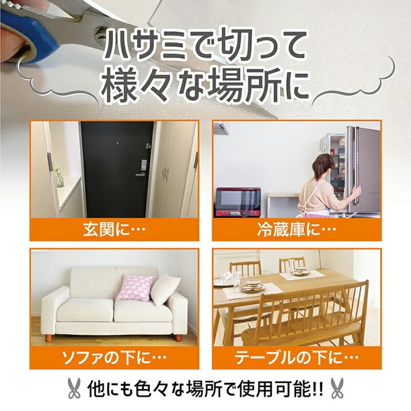 - 長めの購入して、ハサミでカットすることで 隙間なくしくことができました♪ 巻グセがほとんどないのですぐピッタリ敷いて使えます。 水分がすぐ拭けるので掃除も楽です。