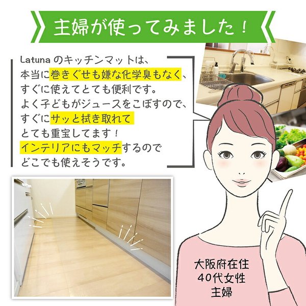 - 好きな長さに切れて良いです。流し台の前に敷いています。水が飛ぶので拭けて良いです。