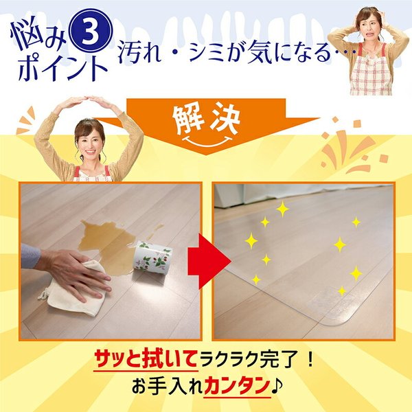 布では落ちない液体の汚れも、サッと一拭きすることで落とすことができます。