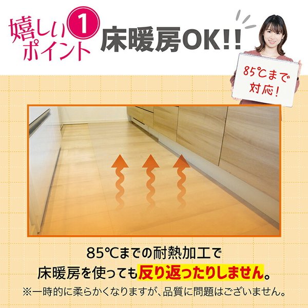 耐熱温度は85℃まで、床暖房の上でご使用可能です。