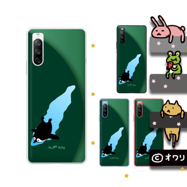 Xperia 10 III SOG04 / SO-52B スマホ ケース カバー au docomo オワリ 「ダイブするペンギン」 グリーン