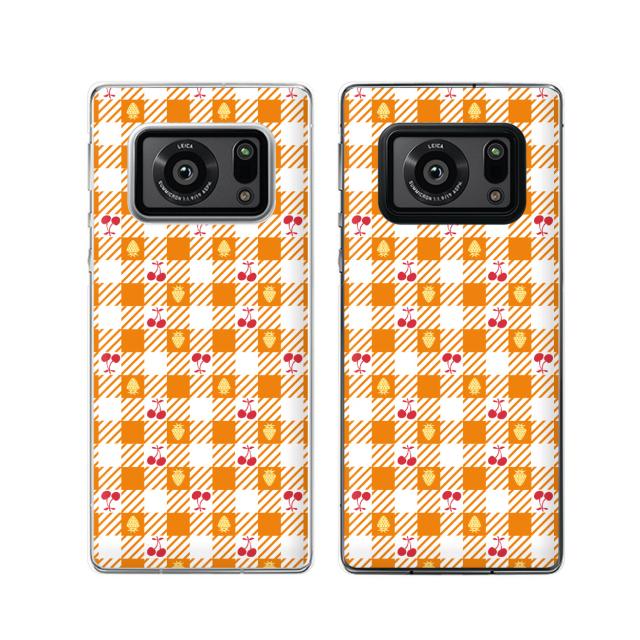 AQUOS R6 (docomo SH-51B / SoftBank) スマホ ケース ハード カバー フルーツ2 チェック オレンジ