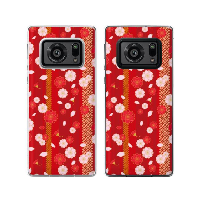 AQUOS R6 (docomo SH-51B / SoftBank) スマホ ケース ハード カバー 和柄8 桜 赤/ピンク