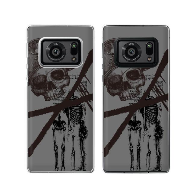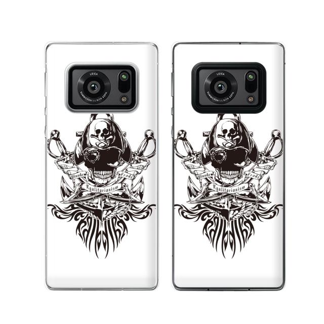 AQUOS R6 (docomo SH-51B / SoftBank) スマホ ケース ハード カバー スカル5 白黒