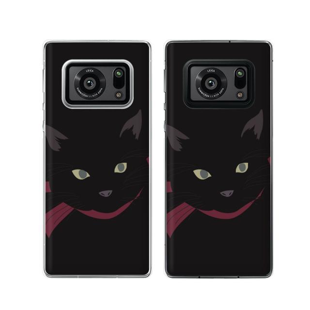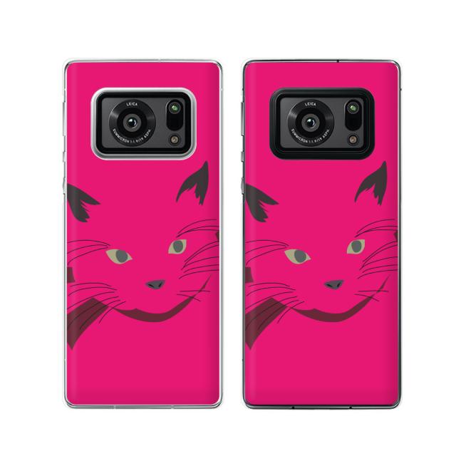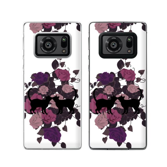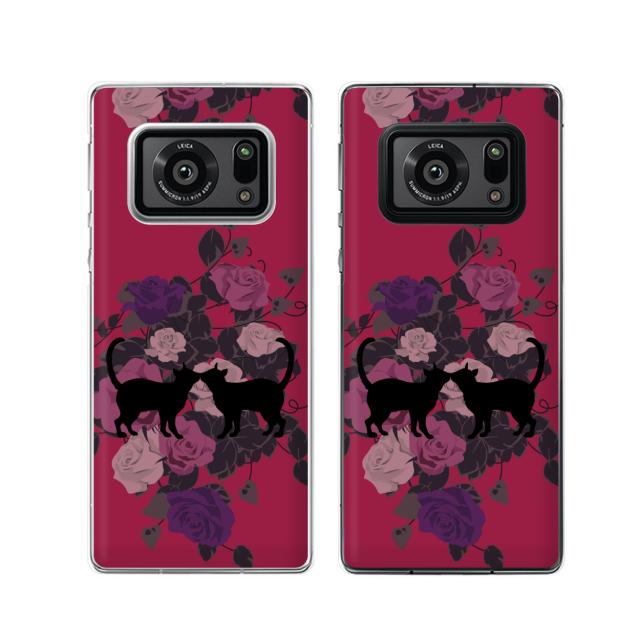 AQUOS R6 (docomo SH-51B / SoftBank) スマホ ケース ハード カバー 猫のカップル 薔薇 ワインレッド