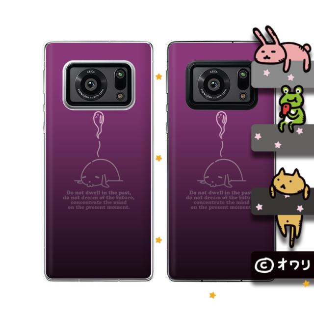 AQUOS R6 (docomo SH-51B / SoftBank) スマホ ケース ハード カバー オワリ 「魂が抜けていくイヌ」 パープル