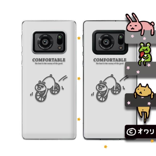 AQUOS R6 (docomo SH-51B / SoftBank) スマホ ケース ハード カバー オワリ 「クマの自転車」 ホワイト