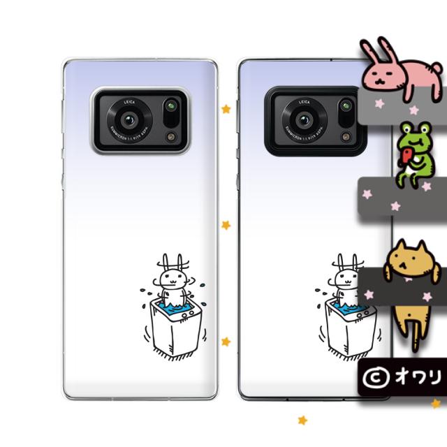 AQUOS R6 (docomo SH-51B / SoftBank) スマホ ケース ハード カバー オワリ 「洗濯機ぐるぐる」 ホワイト