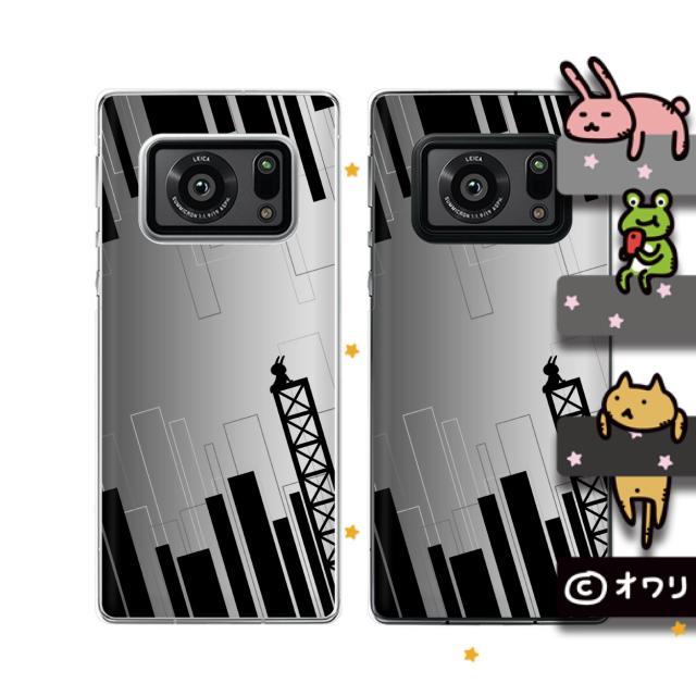 AQUOS R6 (docomo SH-51B / SoftBank) スマホ ケース ハード カバー オワリ 「四角ビルシルエット」 ブラック