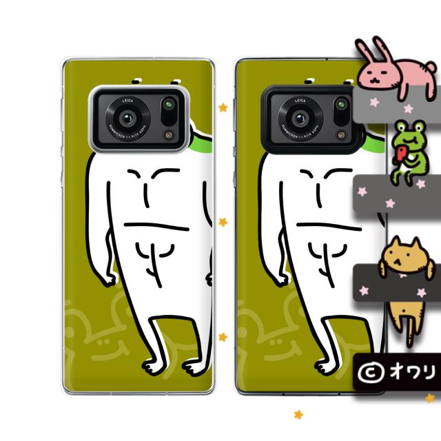 AQUOS R6 (docomo SH-51B / SoftBank) スマホ ケース ハード カバー オワリ 「筋肉のあるカエル」 グリーン